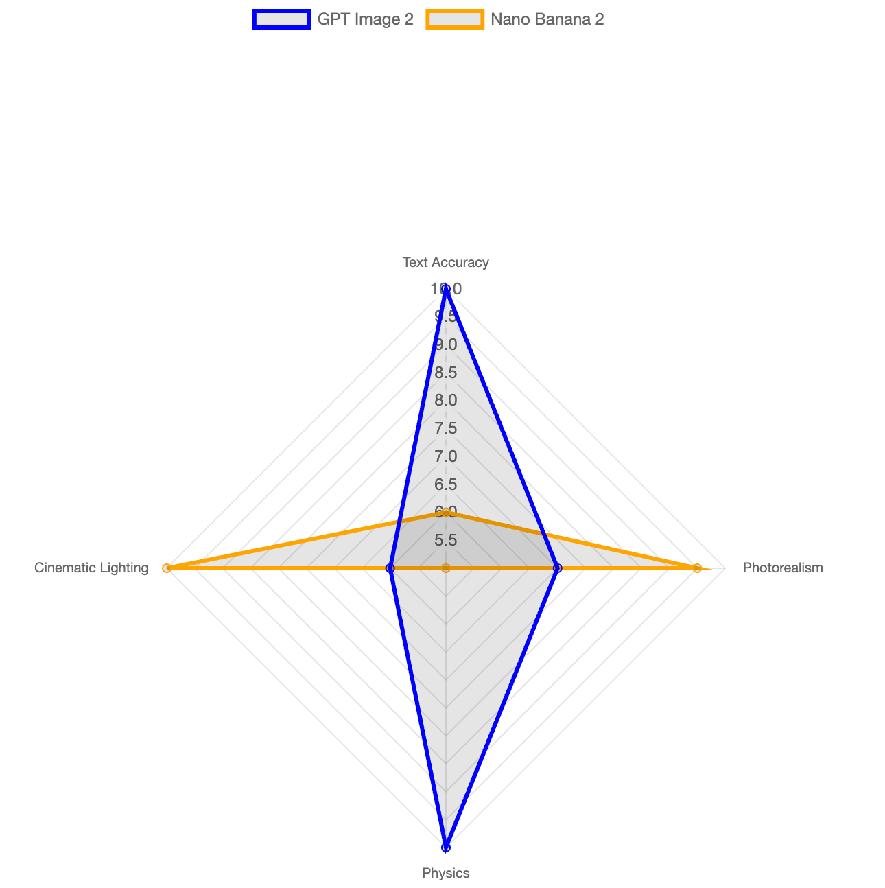 Round 1: Visual Quality and Cinematic Aesthetics: If you want a photo that looks like it was taken with a $5,000 camera, Nano Banana 2 wins. It scored a 9/10 in photorealism, while GPT Image 2 scored a 7/10 because its images can sometimes look a bit "too clean" or "sterile".